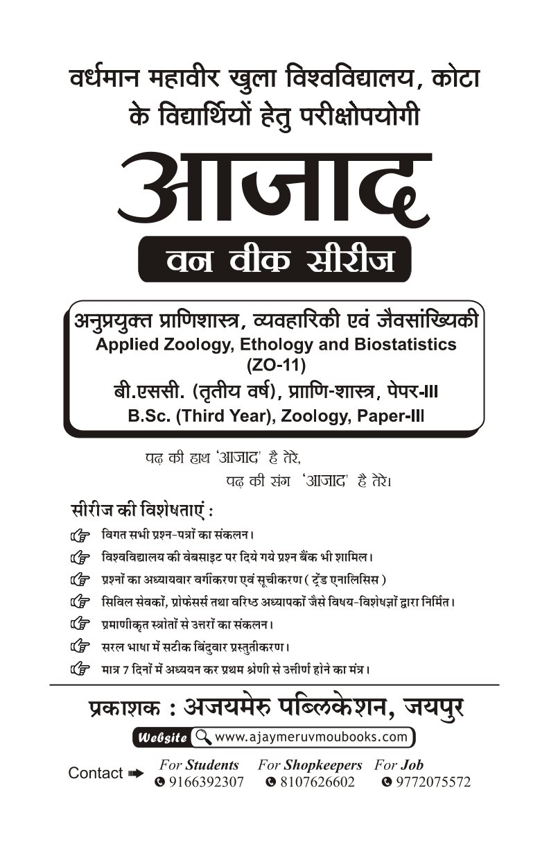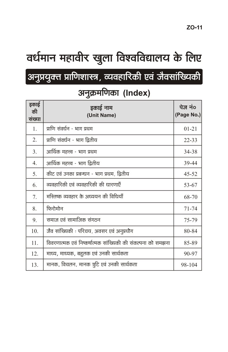 अनुप्रयुक्त प्राणीशास्त्र व्यवहारीकी एवं जैव सांख्यिकी [APPLIED ZOOLOGY, ENTHOLOGY & BIOSTATISTICS] (ZO - 11)