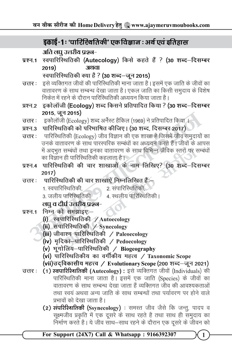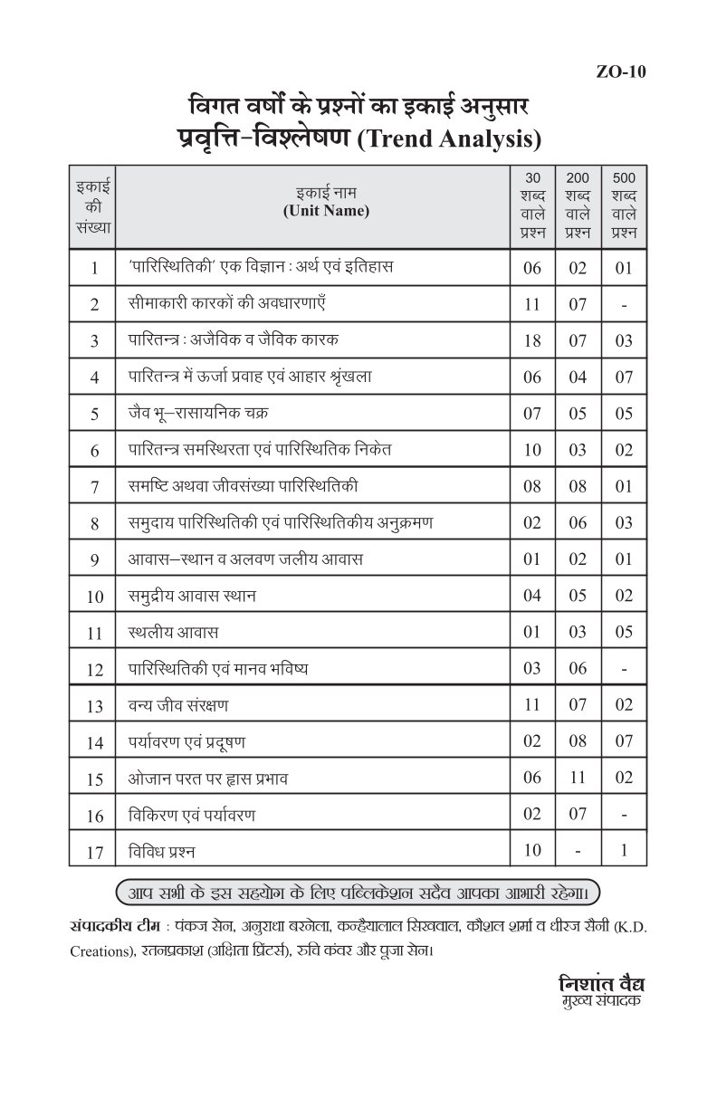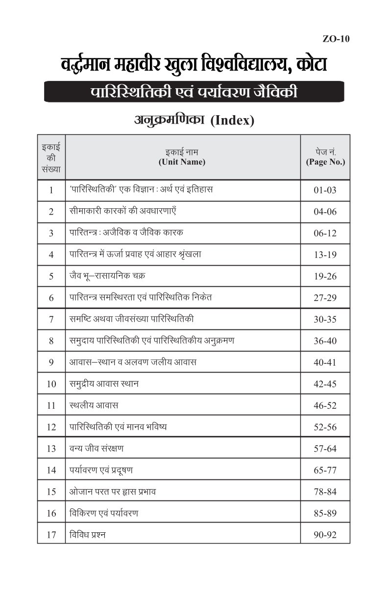 पारिस्थितिकी एवं पर्यावरण जैविकी [ECOLOGY & ENVIRONMENTAL BIOLOGY] (ZO - 10)