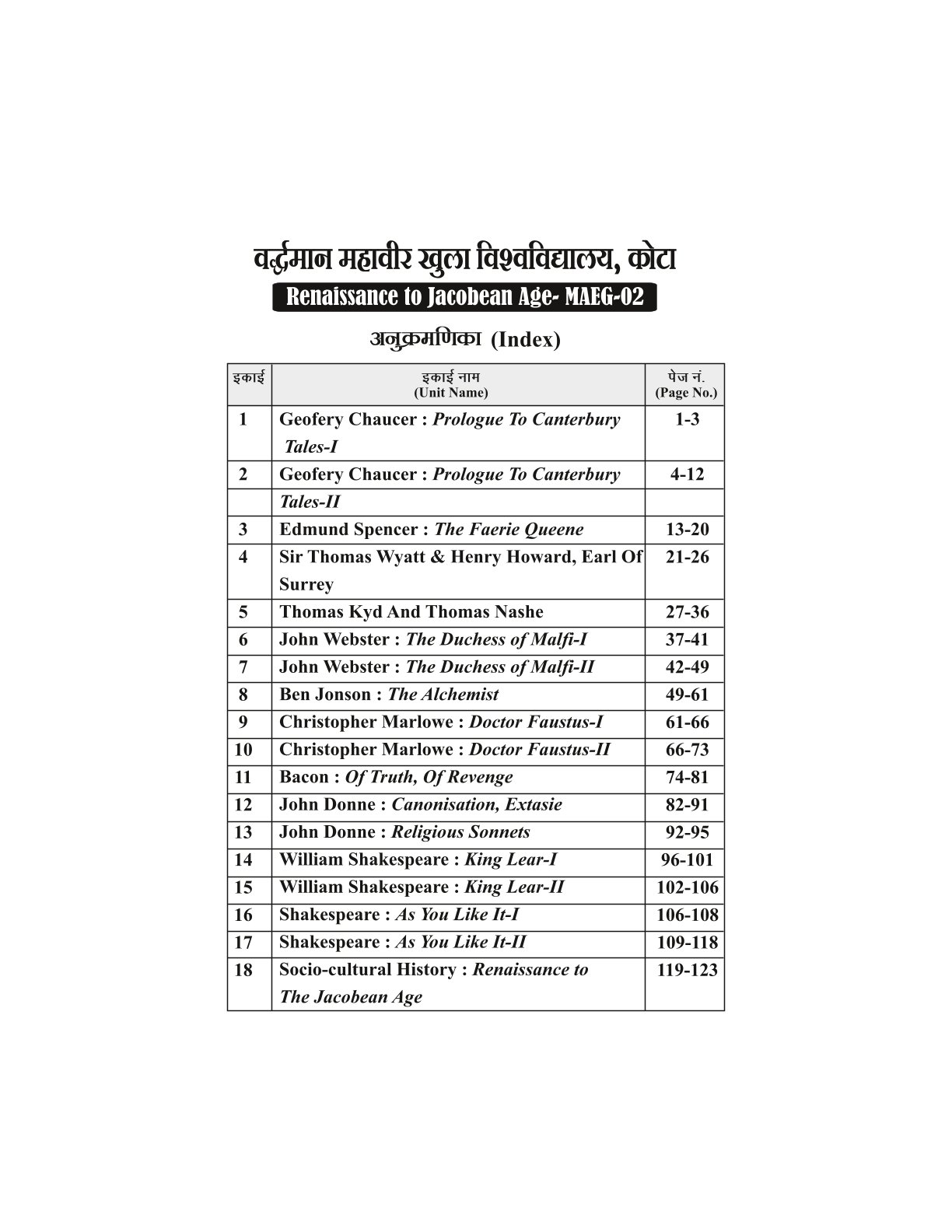 RENAISSANCE TO JACOBEAN AGE (MAEG - 02)
